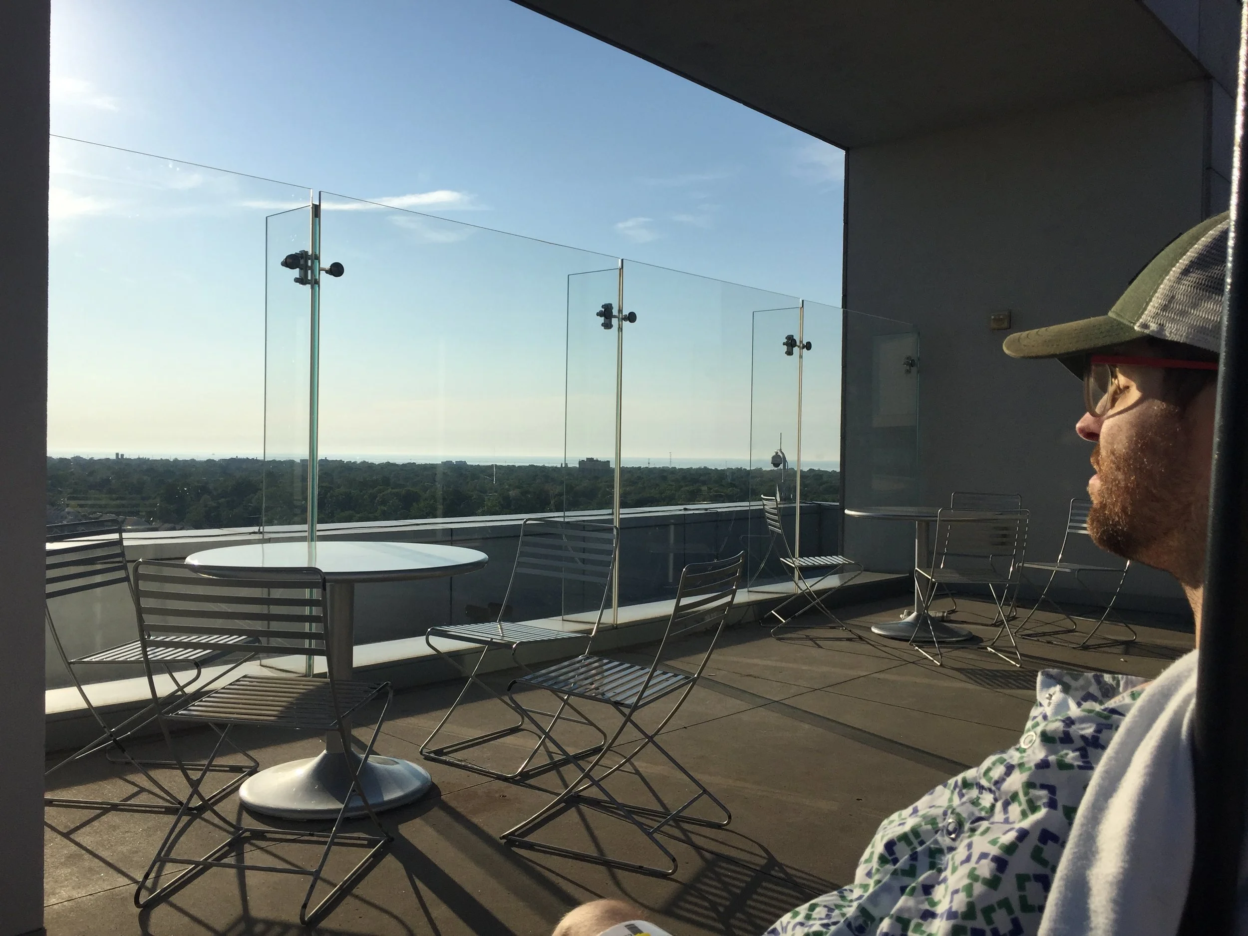 Today we wind down our first day in Cleveland and Shawn is now officially a Clevelander. We had a nice relaxing day full of tests, naps, and an Office marathon on Comedy Central. We even made it up to the roof to deck to get some sunshine. Shawn is feeling stronger every day.